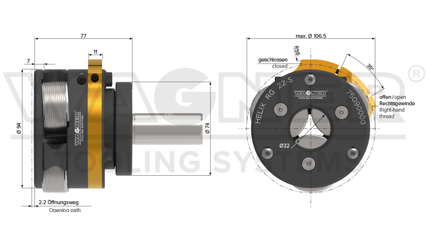HELIX-Axialrollwerkzeug zur Außengewindefertigung, stillstehend