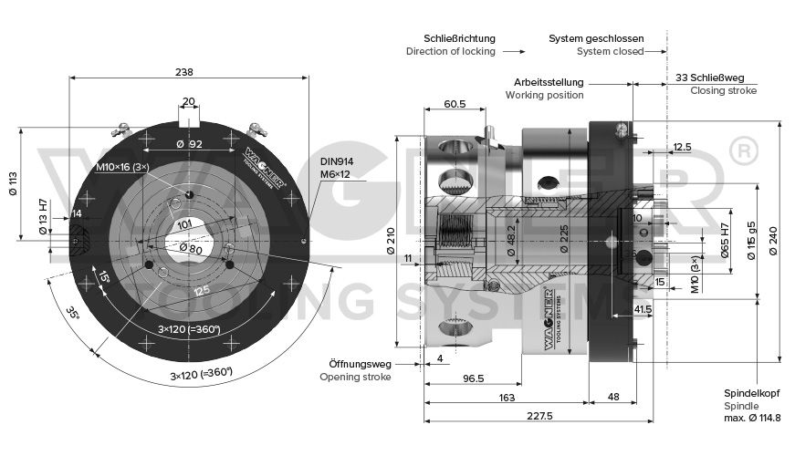 Arbeitsbereich Ø (mm/Zoll):