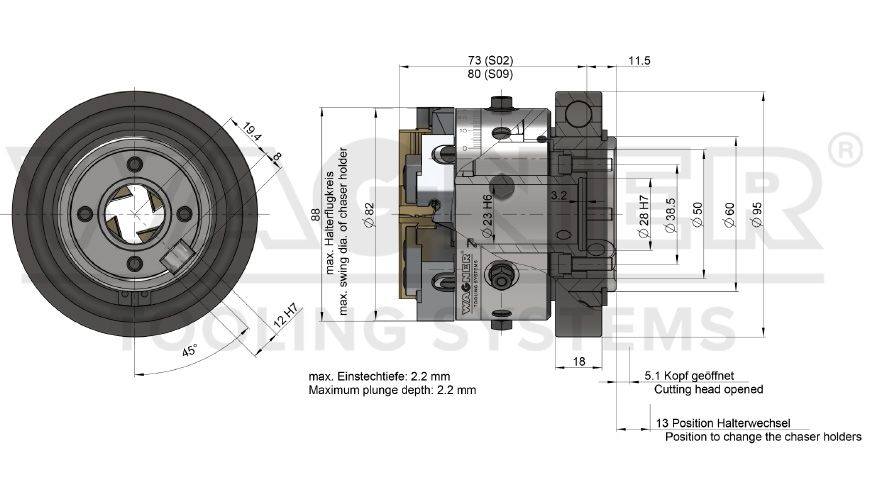 Max. Einstechtiefe (radial) mm (Zoll) |