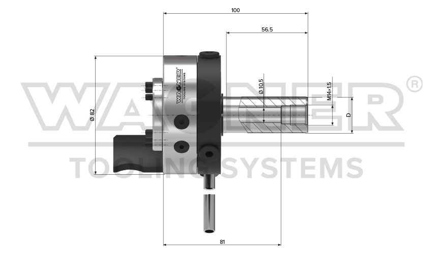 - Zur Betätigung der Schließeinrichtung ist Kühlmittel (Öl/Emulsion) oder Druckluft erforderlich.