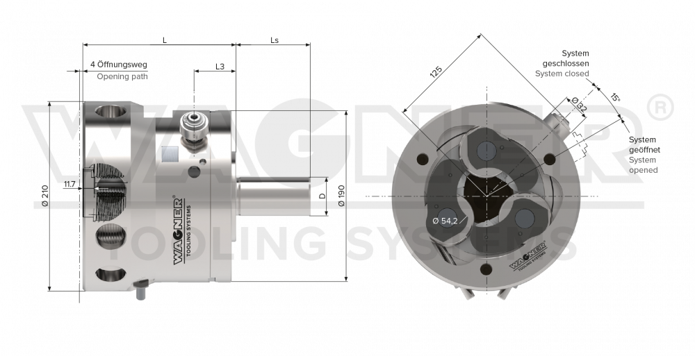 | Working range Ø Standard thread | 0.472“–1.772“ |