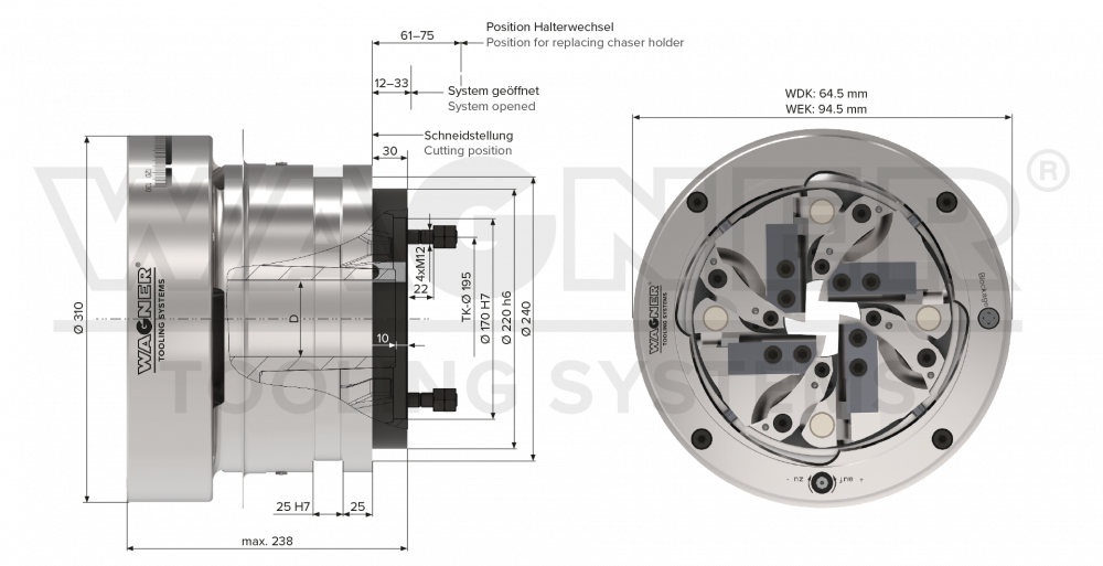 | Trapezoidal and round threads Ø | 10–44 mm |