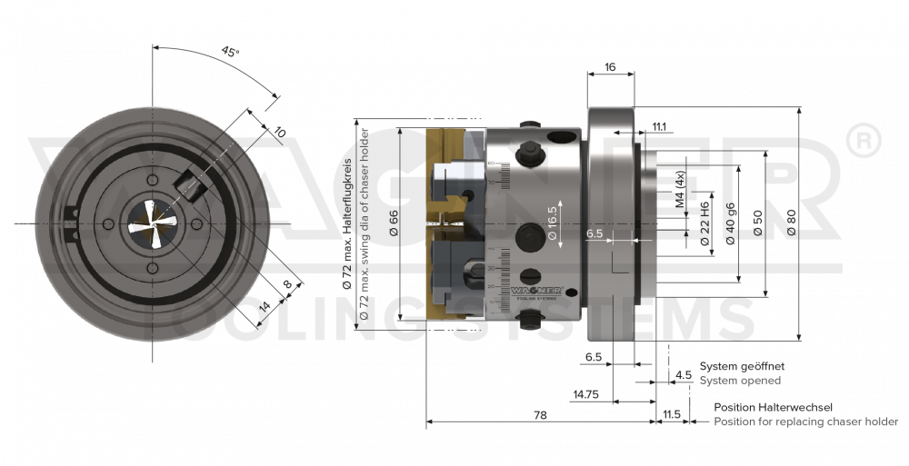 | Strehlerhalter | Arbeitsbereich Kern-Ø mm (Zoll / Inch) | Max. Einstechtiefe (radial) (Zoll / Inch) |