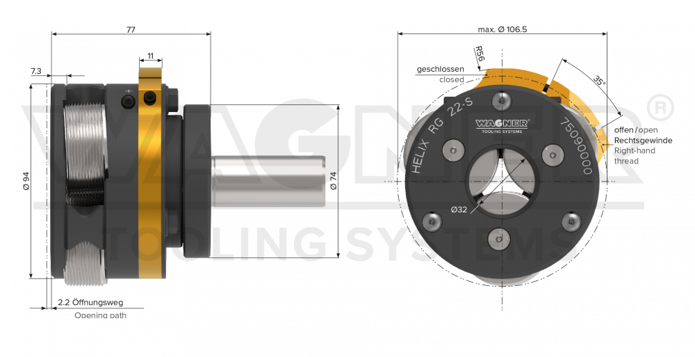 | Metrisches ISO-Gewinde DIN 13 | RG22-S / RG22-R | FG22-S / FG22-R |
