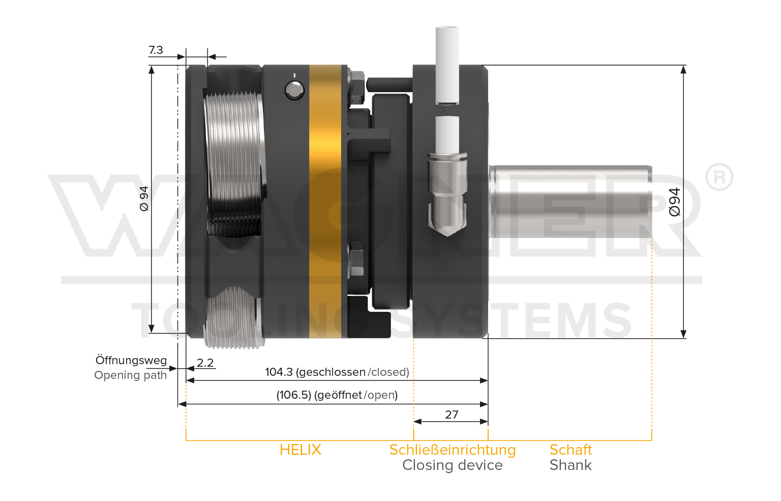 Jedes stillstehend eingesetzte Axial-Rollsystem HELIX kann mit einer Schließeinrichtung (pneumatisch oder kühlmittelbetrieben) nachgerüstet werden.